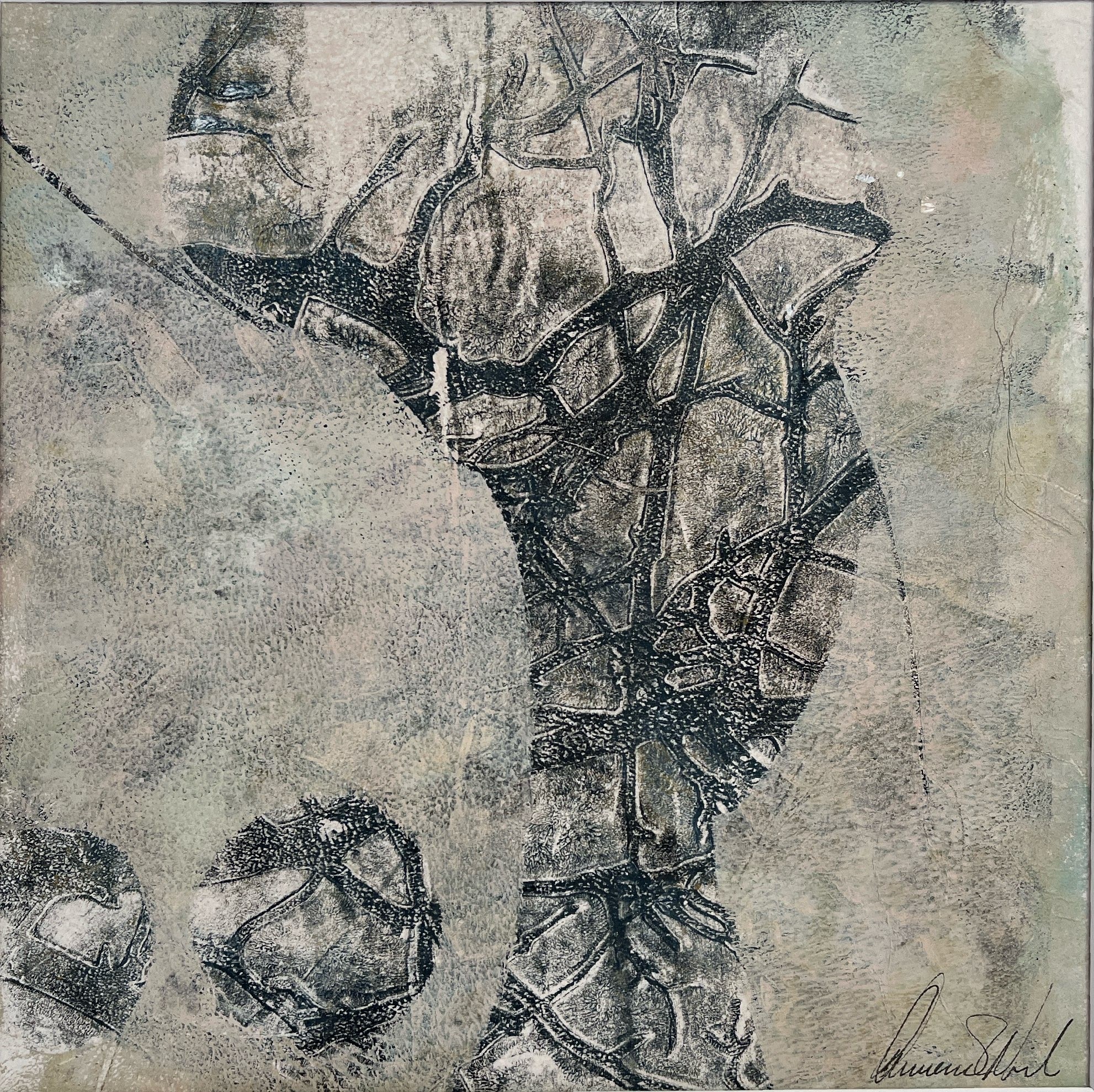 Monoprint et original kunstværk. Lag på lag tryk, på papir.