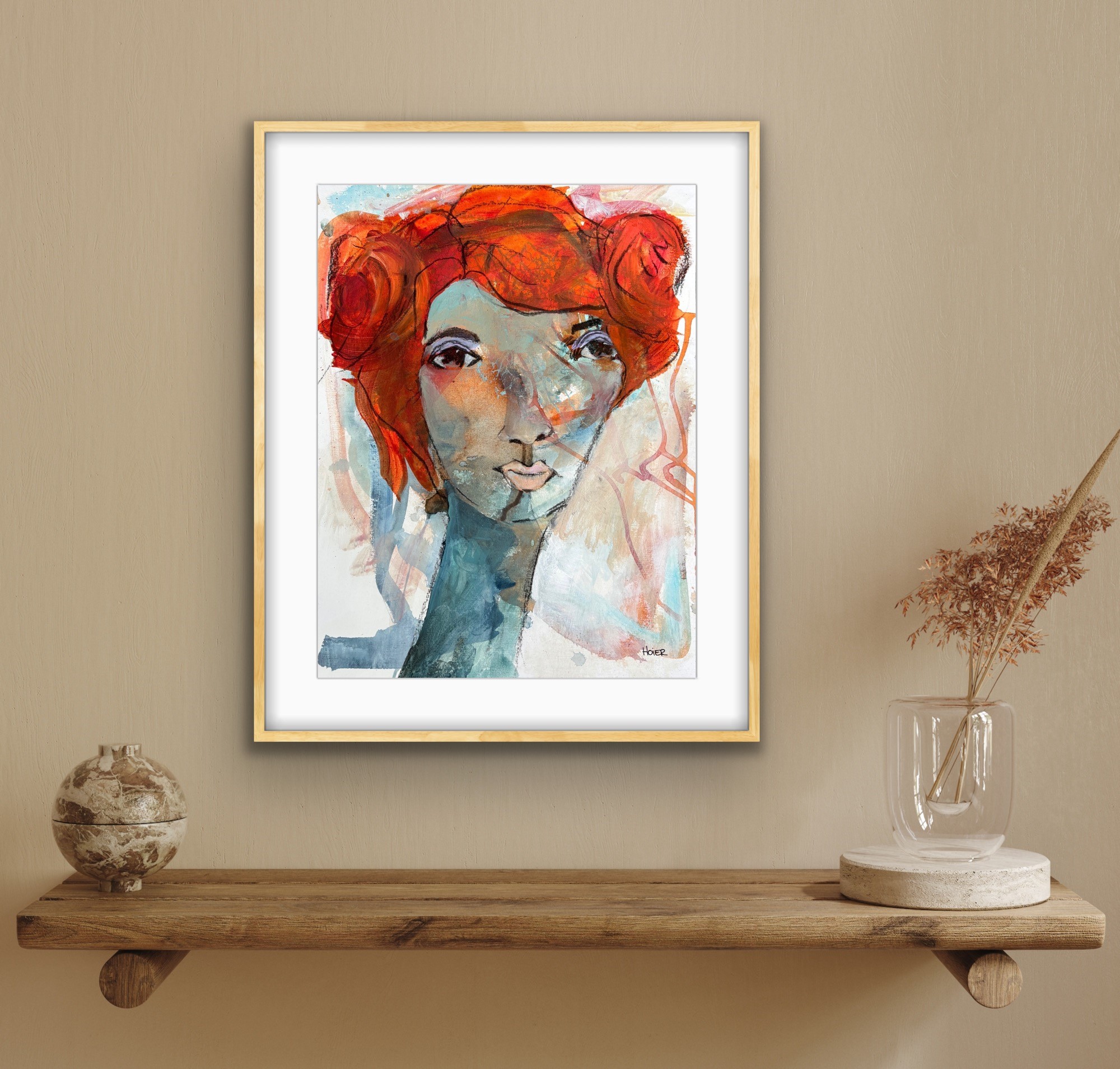 Monteret i egetræramme med refleksfri museumsglas