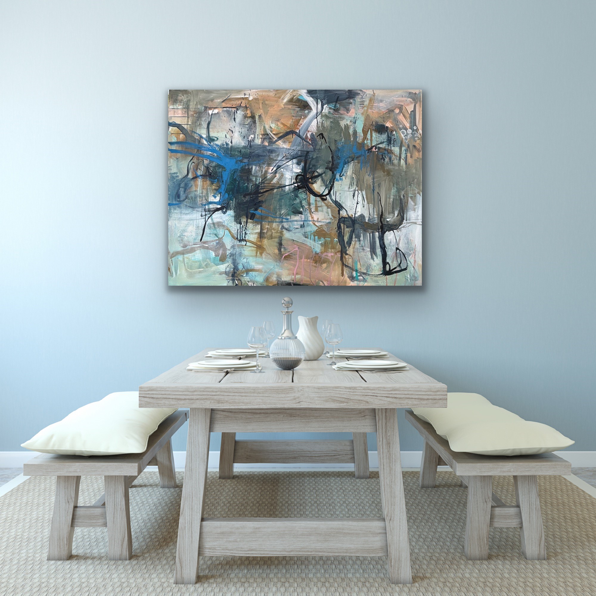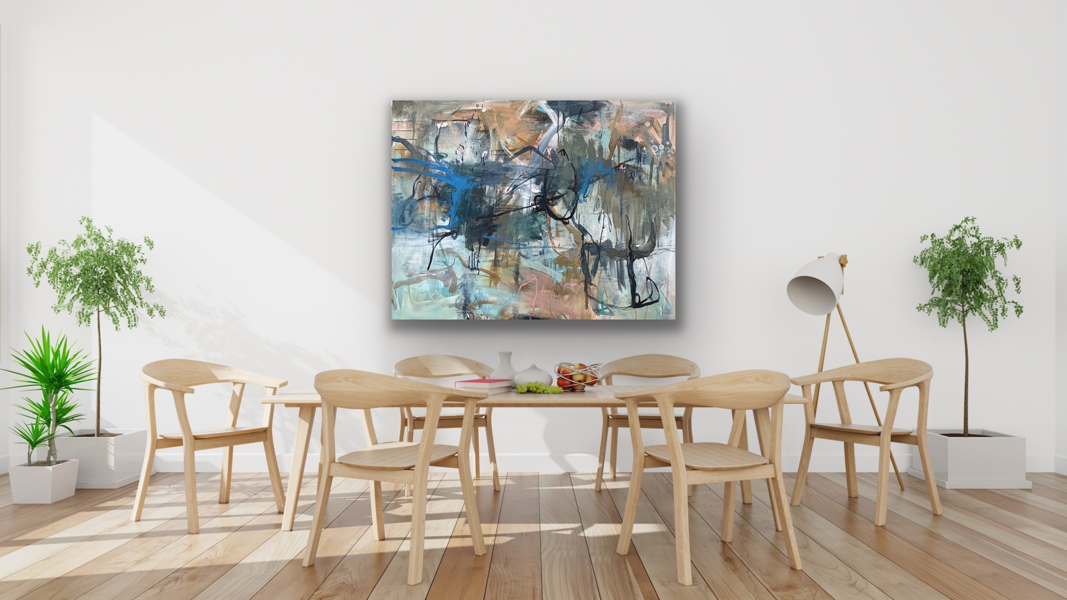 Maleri malet med akryl og måler 90×120 kan vendes på begge lodrette led Lærred monteret på kraftig blendramme lavet af træ.