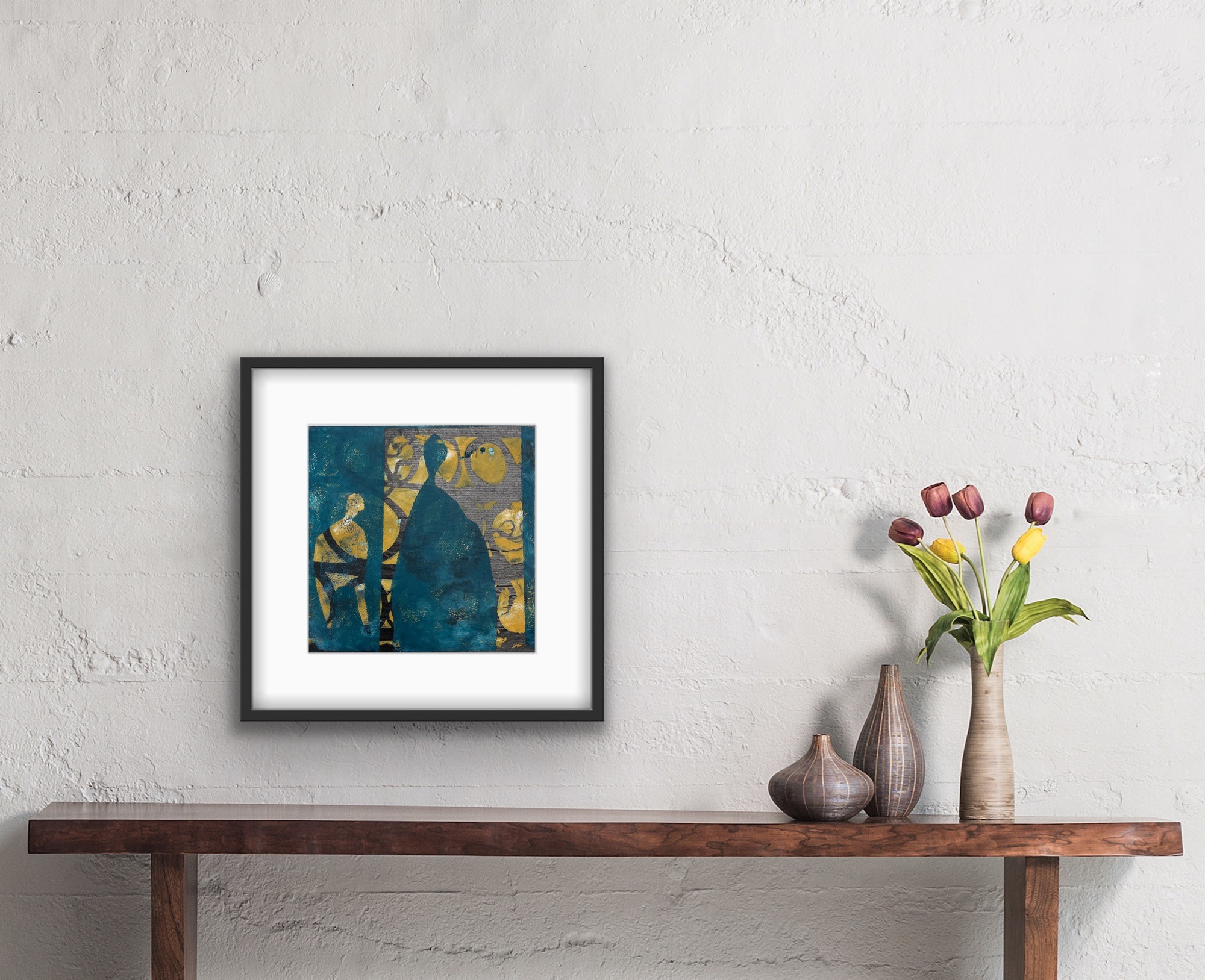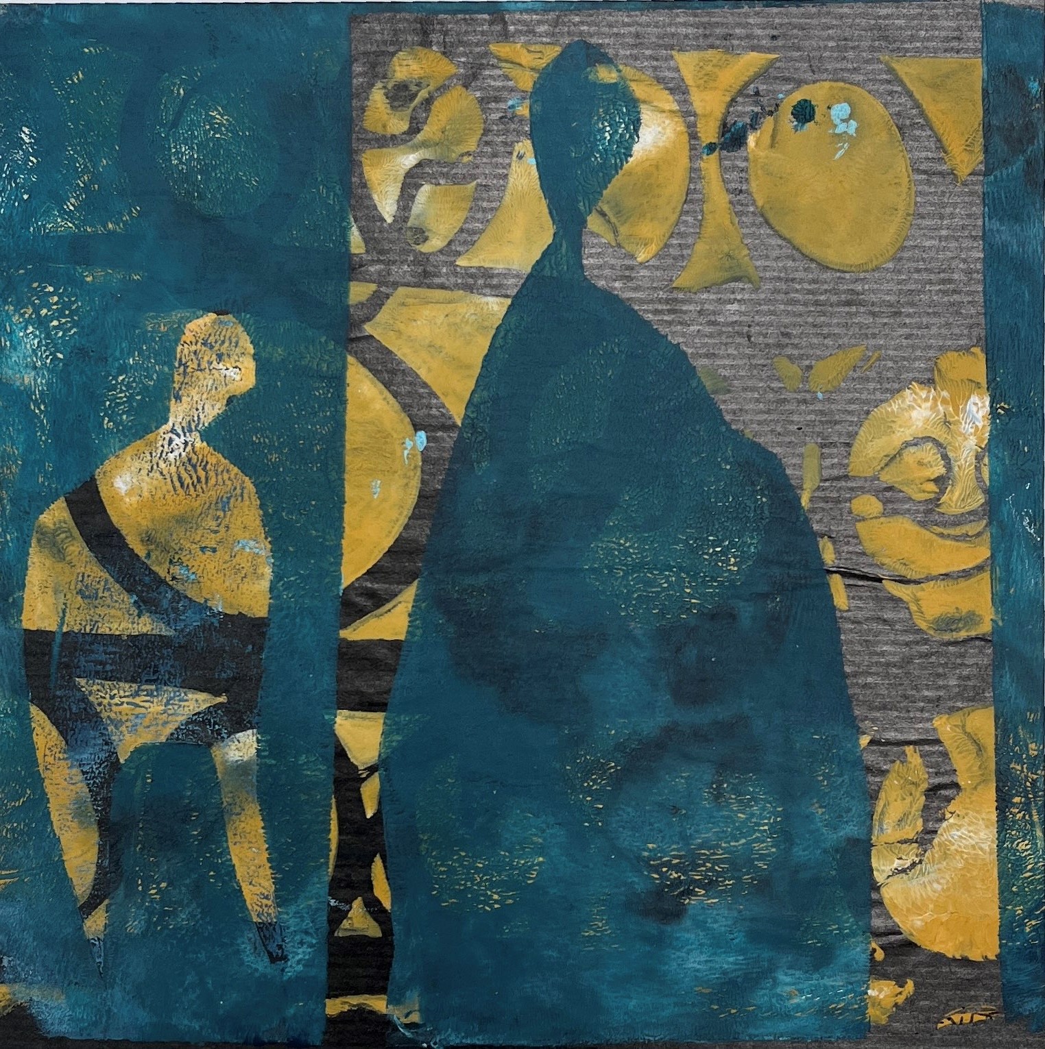 Monoprint et original kunstværk. Lag på lag tryk, på papir.