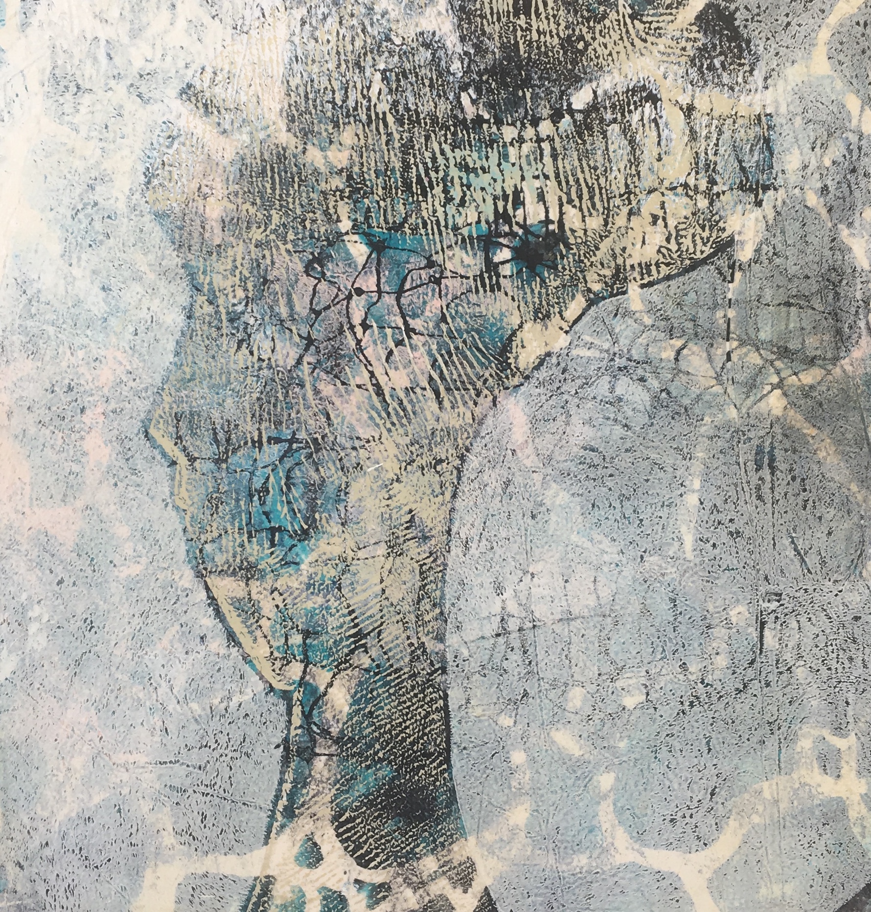Monoprint et original kunstværk. Lag på lag tryk, på papir.