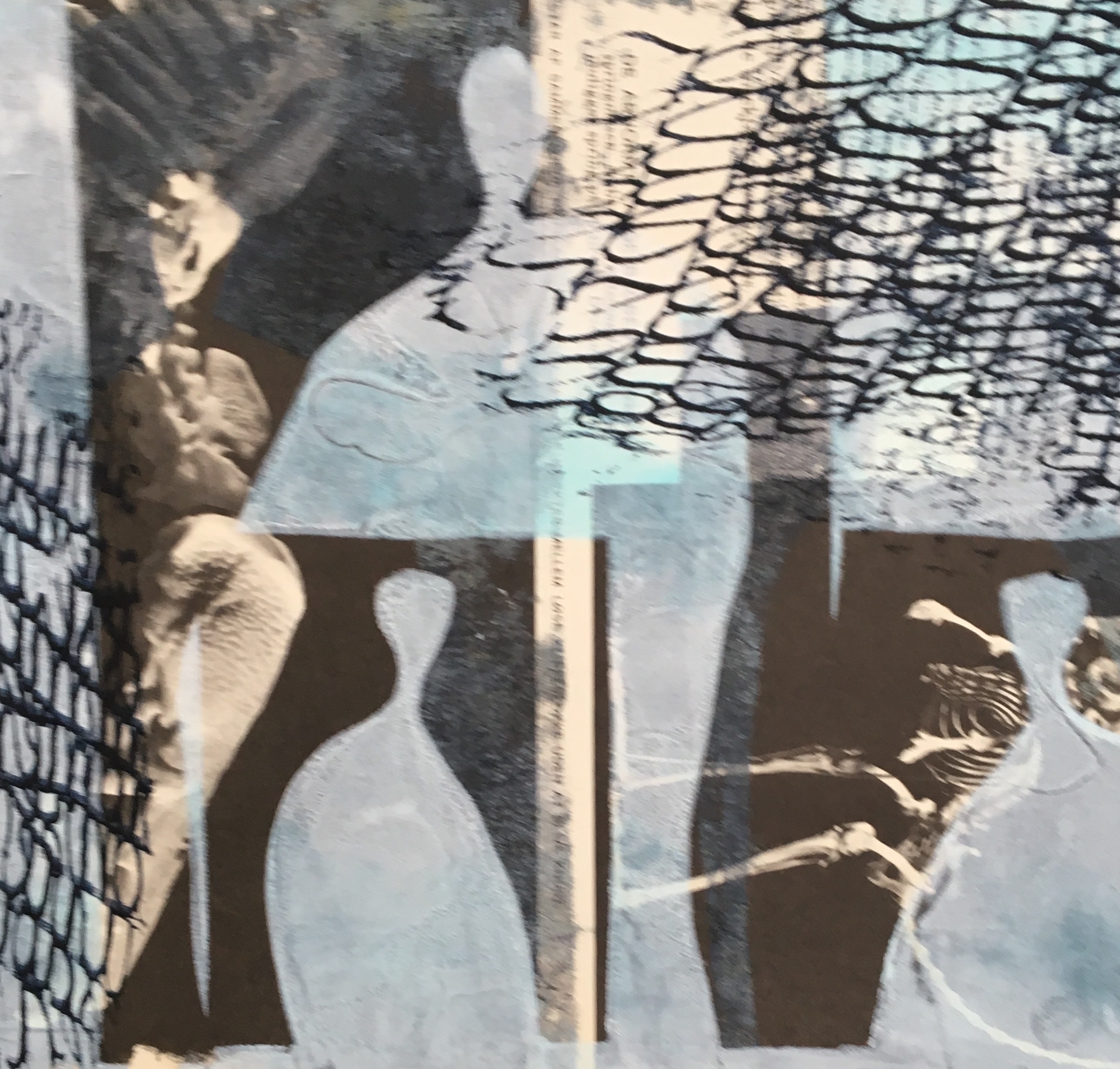 Monoprint et original kunstværk. Lag på lag tryk, på papir.