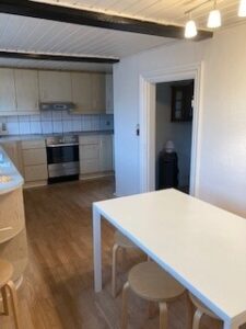 I huset er det 4 værelser, 1 badeværelse, køkken og stue.