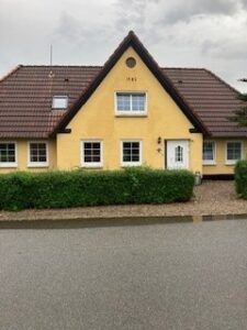 Her ses billeder af " Det lille gule hus" som kan lejes.