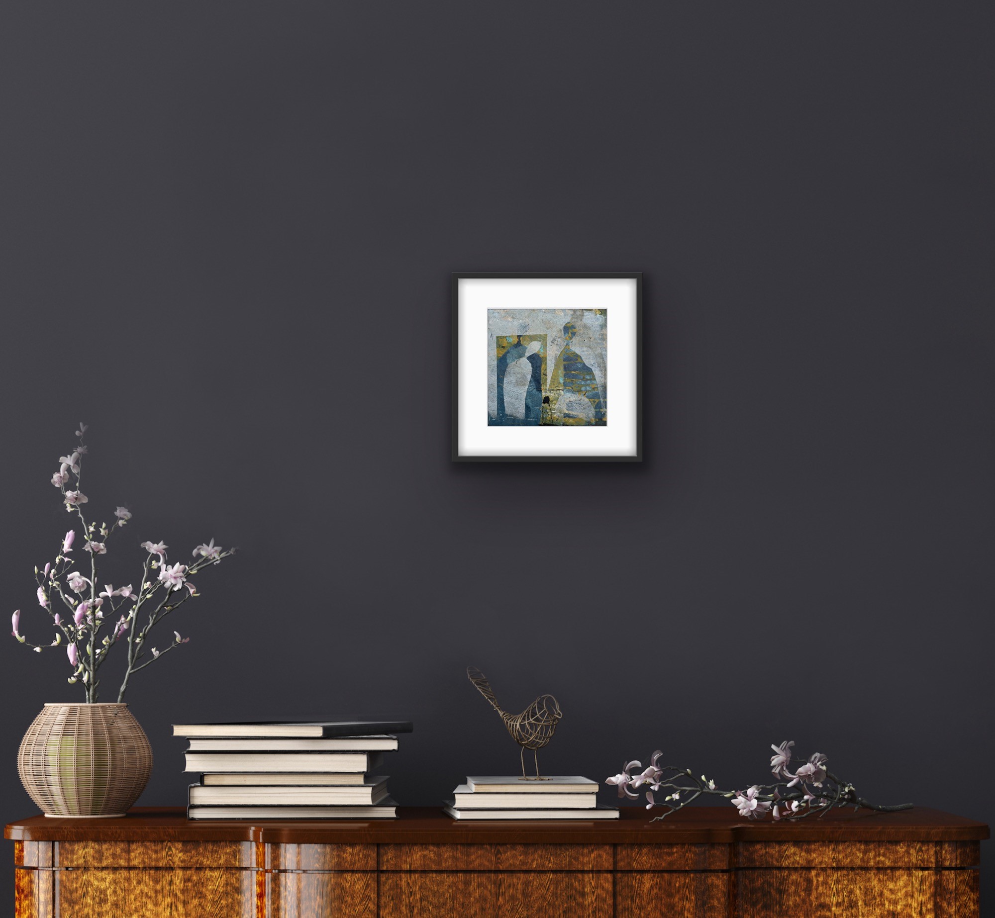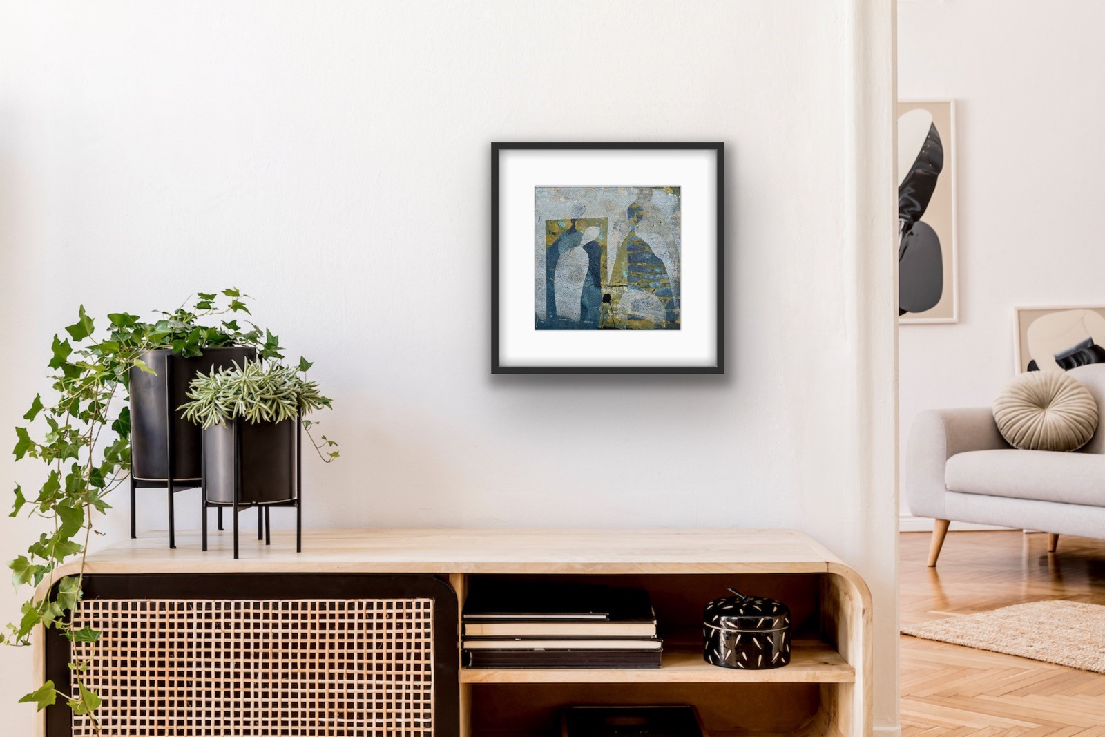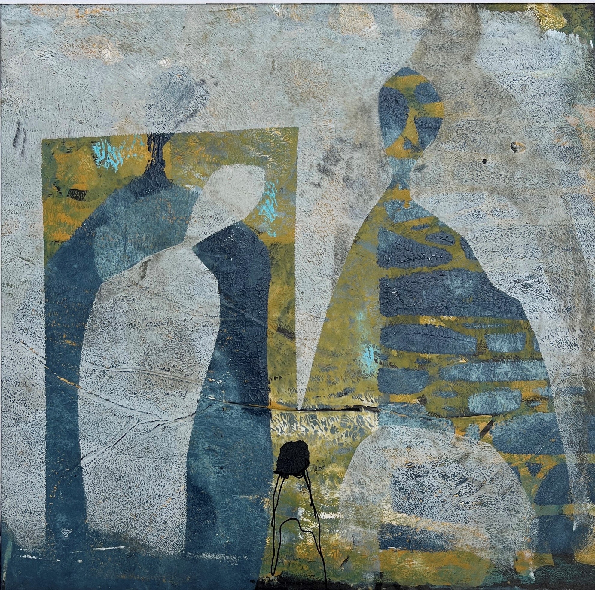 Monoprint et original kunstværk. Lag på lag tryk, på papir.