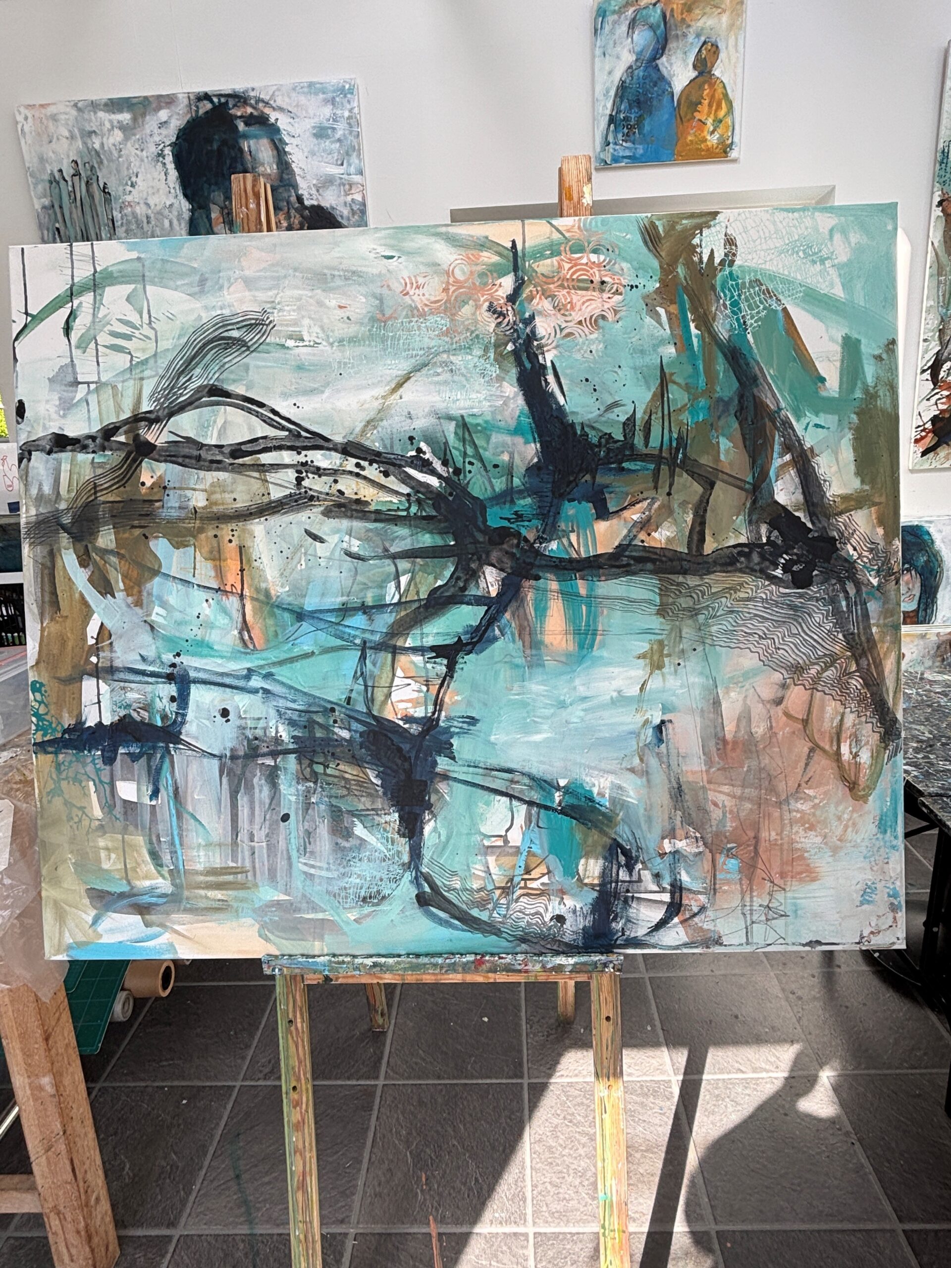 Maleri malet med akryl og måler 100×120 kan vendes på begge vandrette led