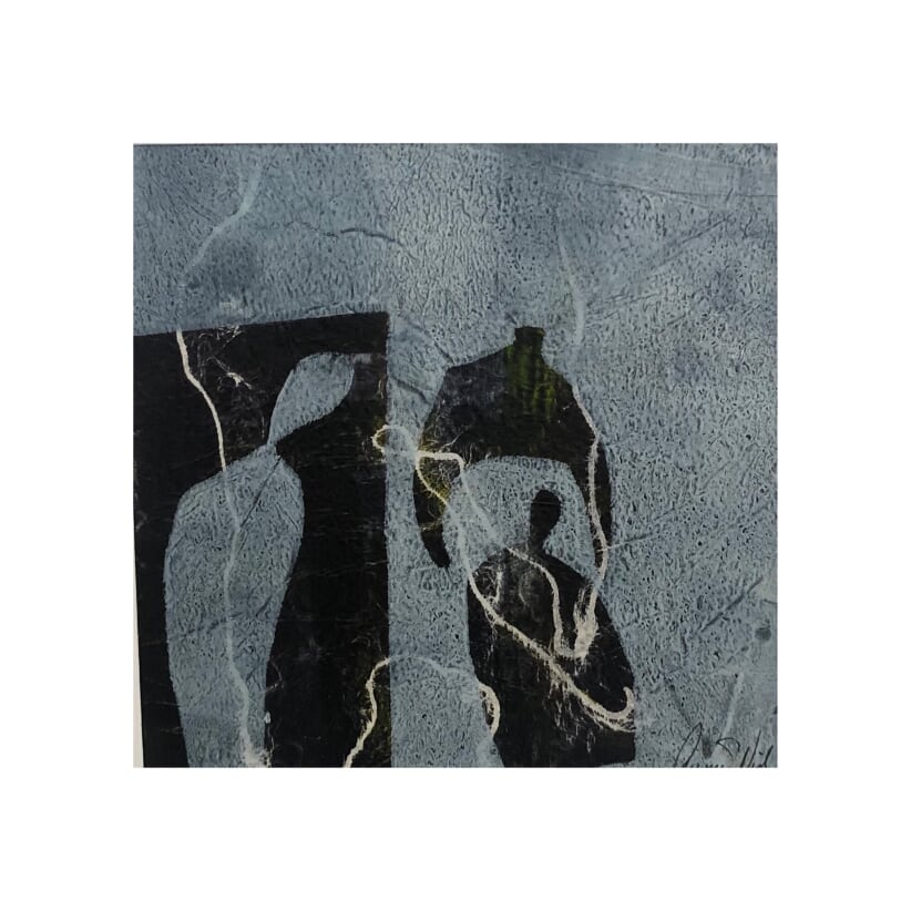 Monoprint et original kunstværk. Lag på lag tryk, på papir.